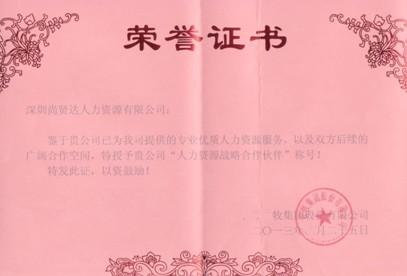 尚賢達獵頭被某知名央企評為"人力資源戰略合作伙伴"